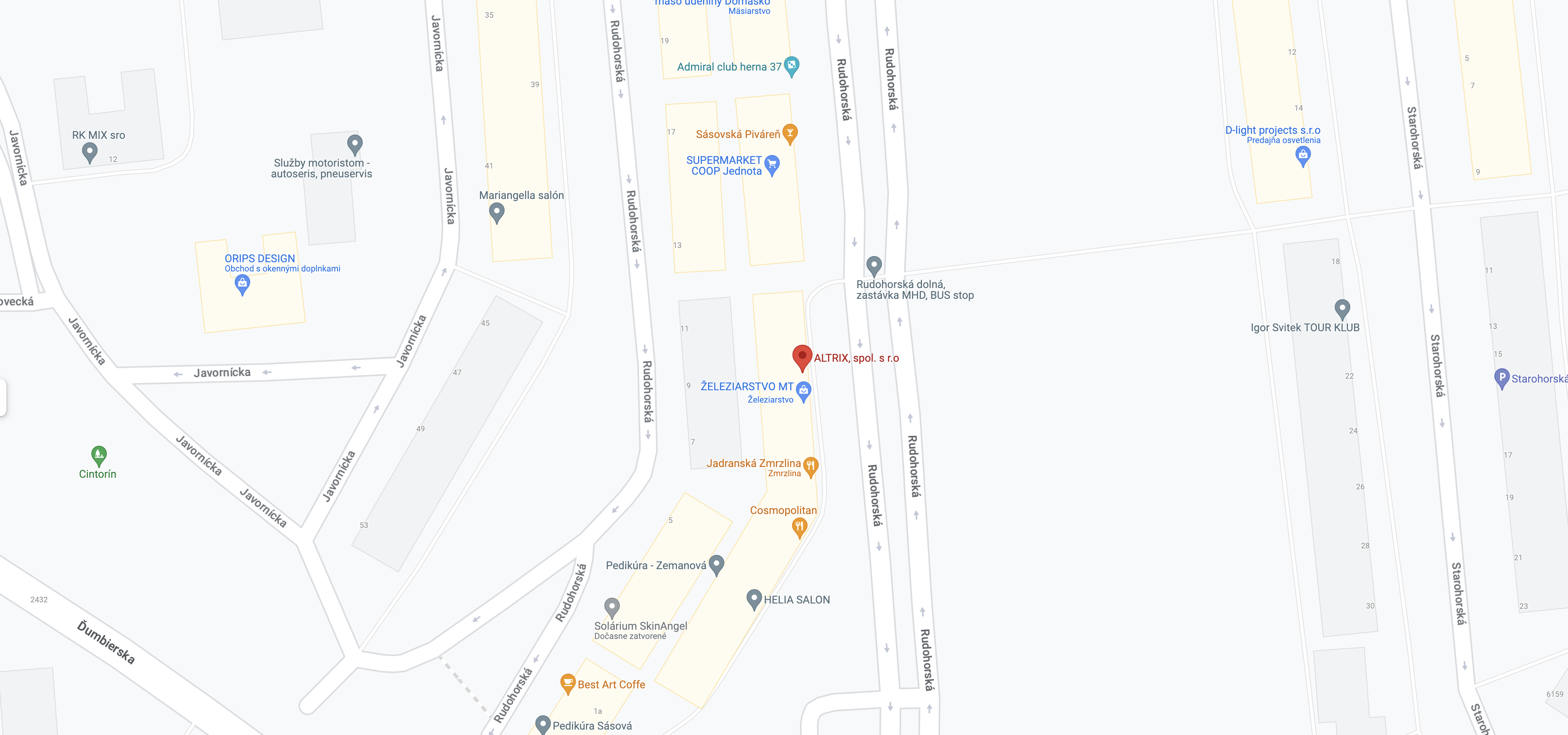 ALTRIX, spol. s r.o. tel.: +421 905 322 161 Pri hľadaní nášho sídla vám môžu pomôcť aj tieto obrázky |